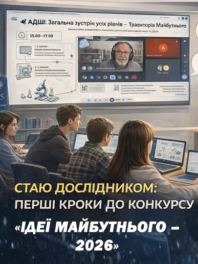 АДШІ – це простір, де вчаться не тільки генерувати ідеї, а й мислити відповідально, аргументувати, доводити, захищати. Попереду – доопрацювання текстів, підготовка візуалізацій, структурування доповідей. Попереду – наукова дискусія. Ми не просто готуємося до конкурсу. Ми формуємо культуру дослідження.