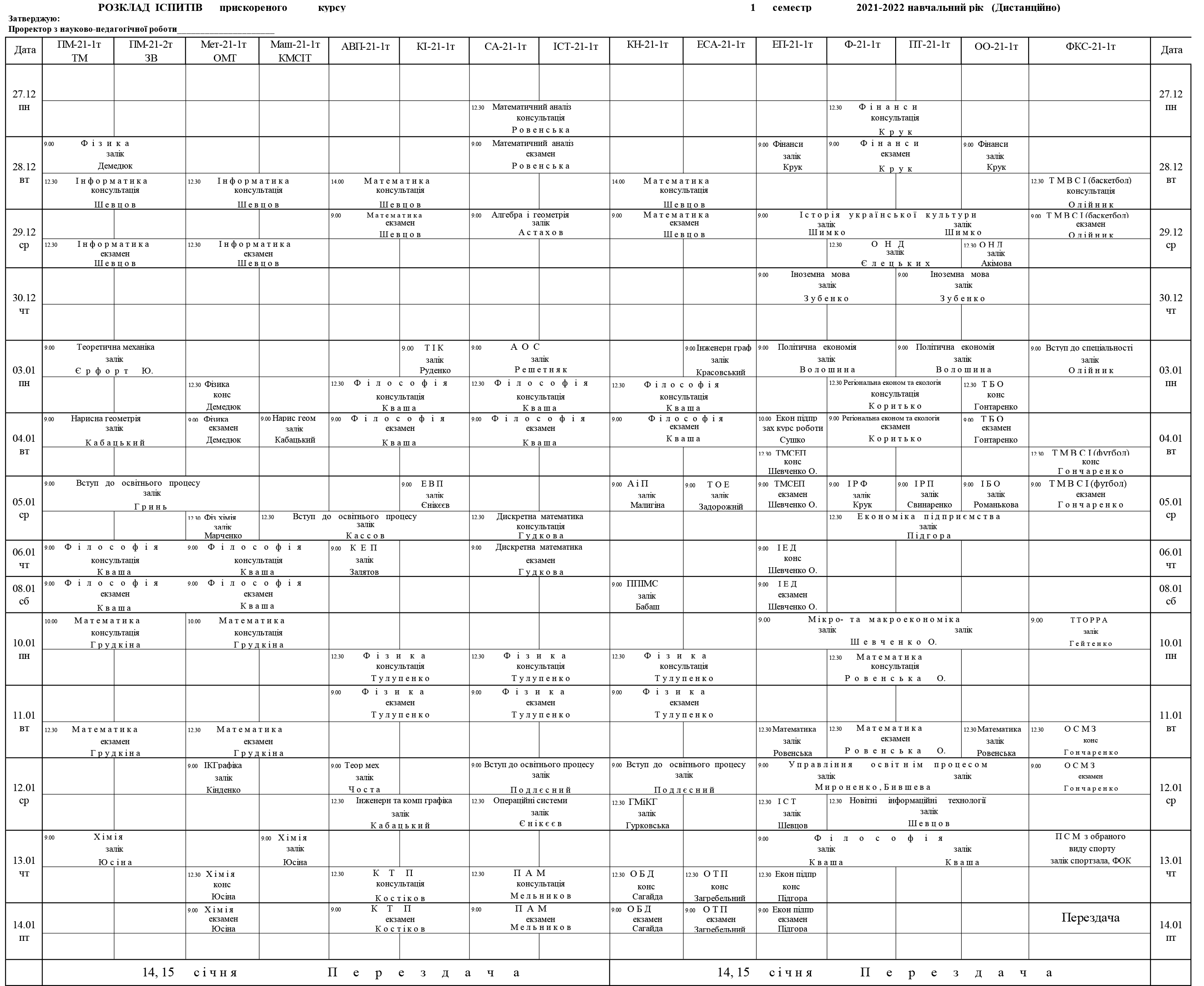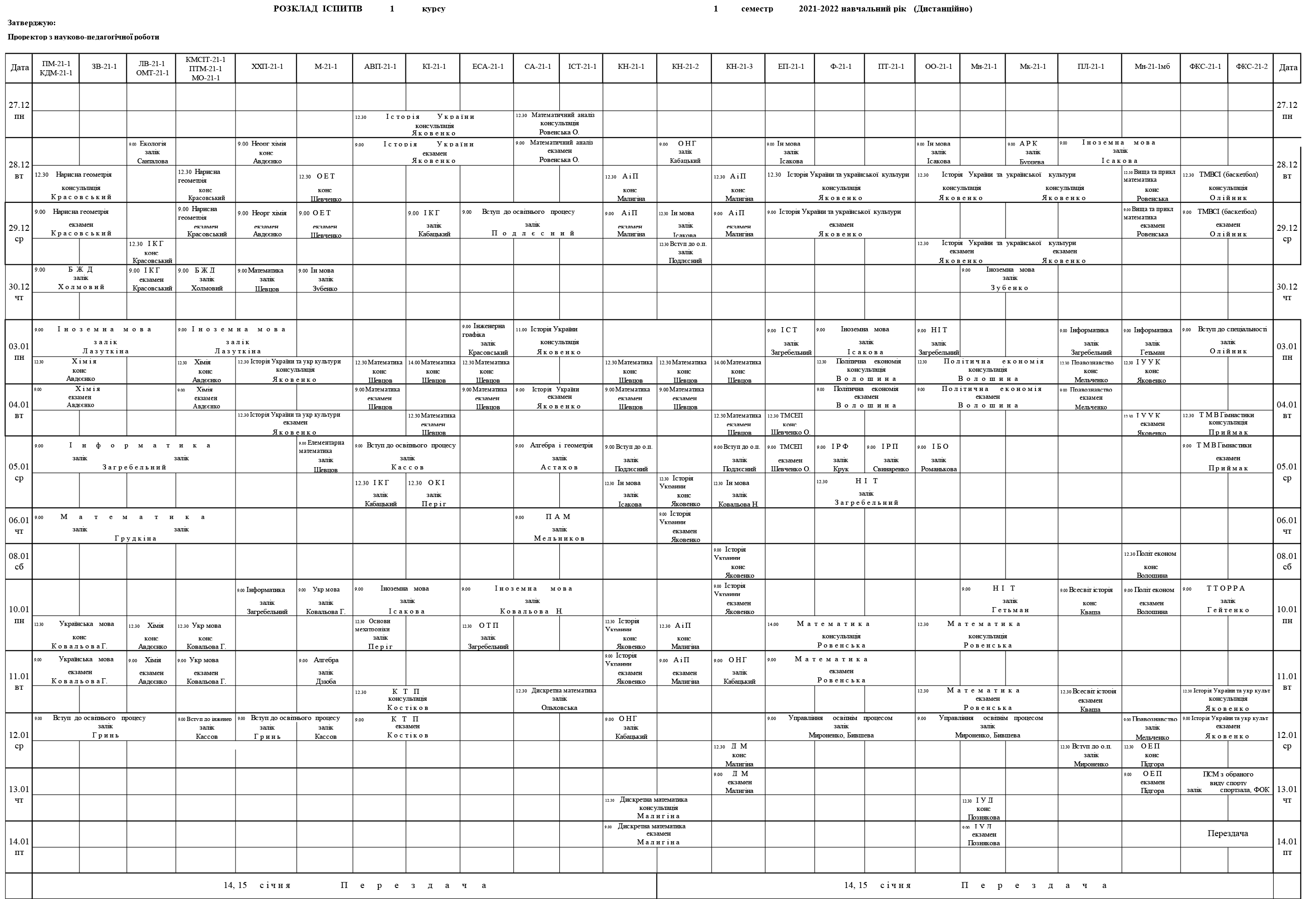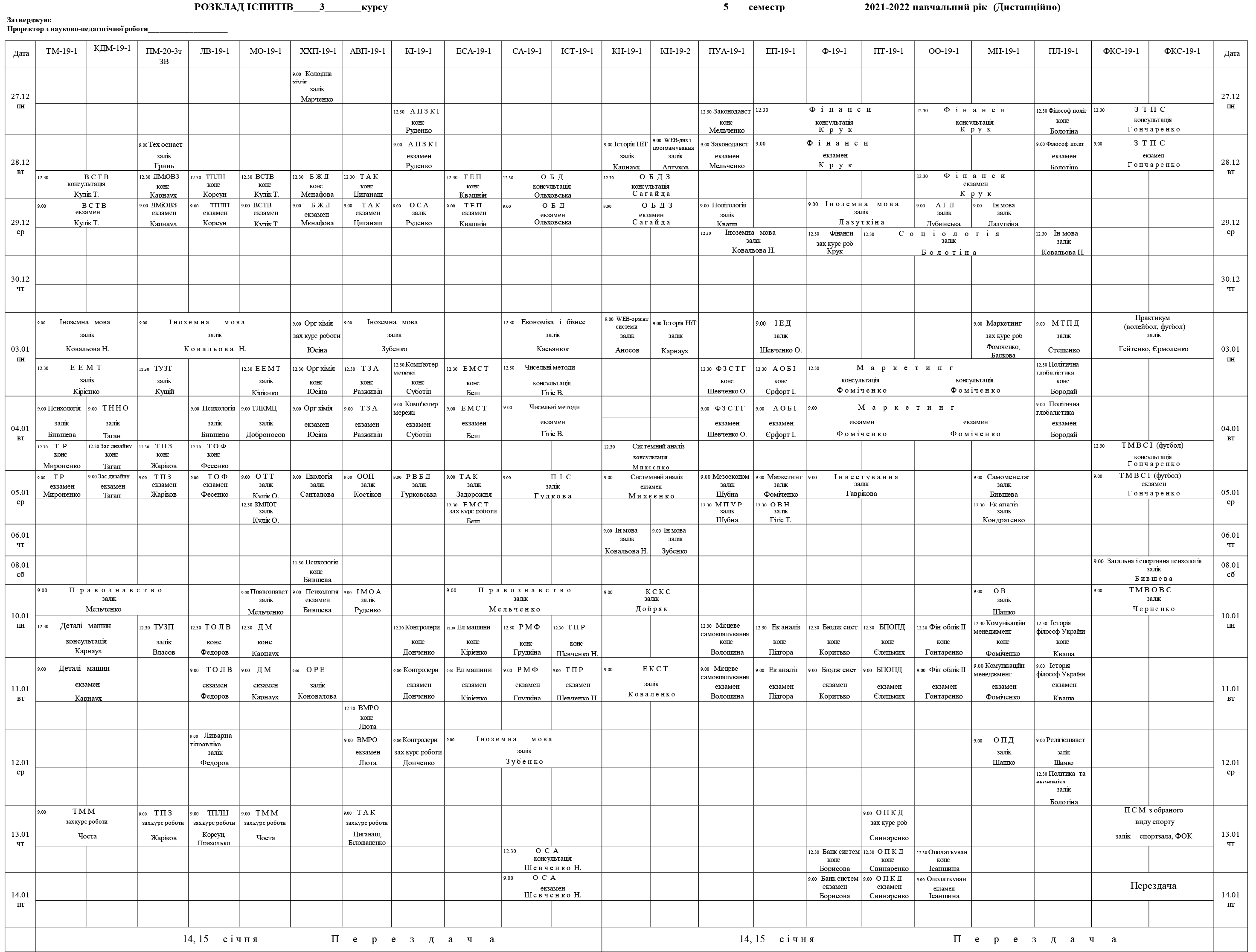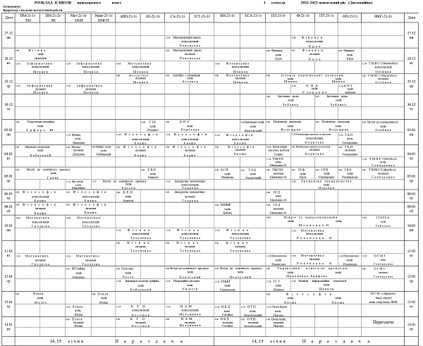 Розклад сессії для студентів денної форми навчання (дистанційно)