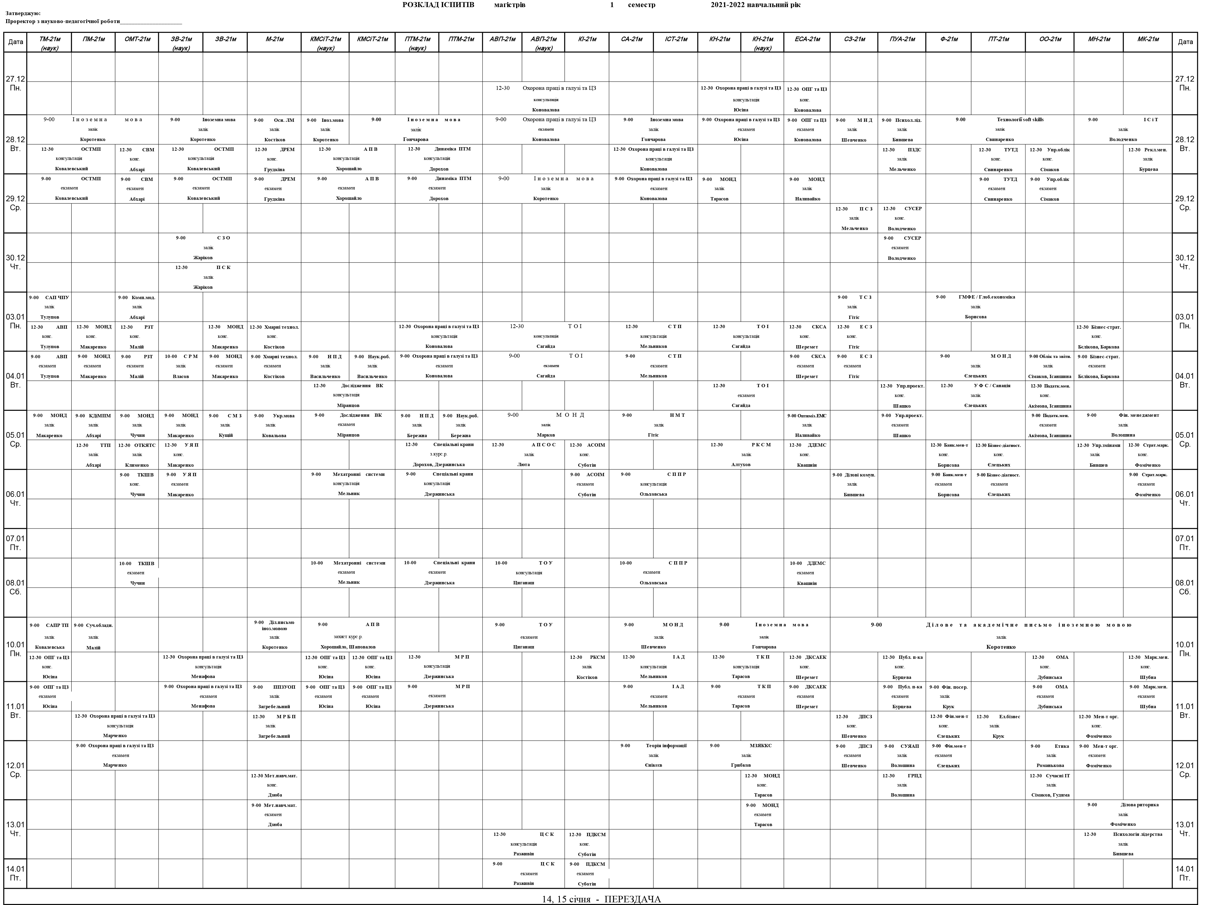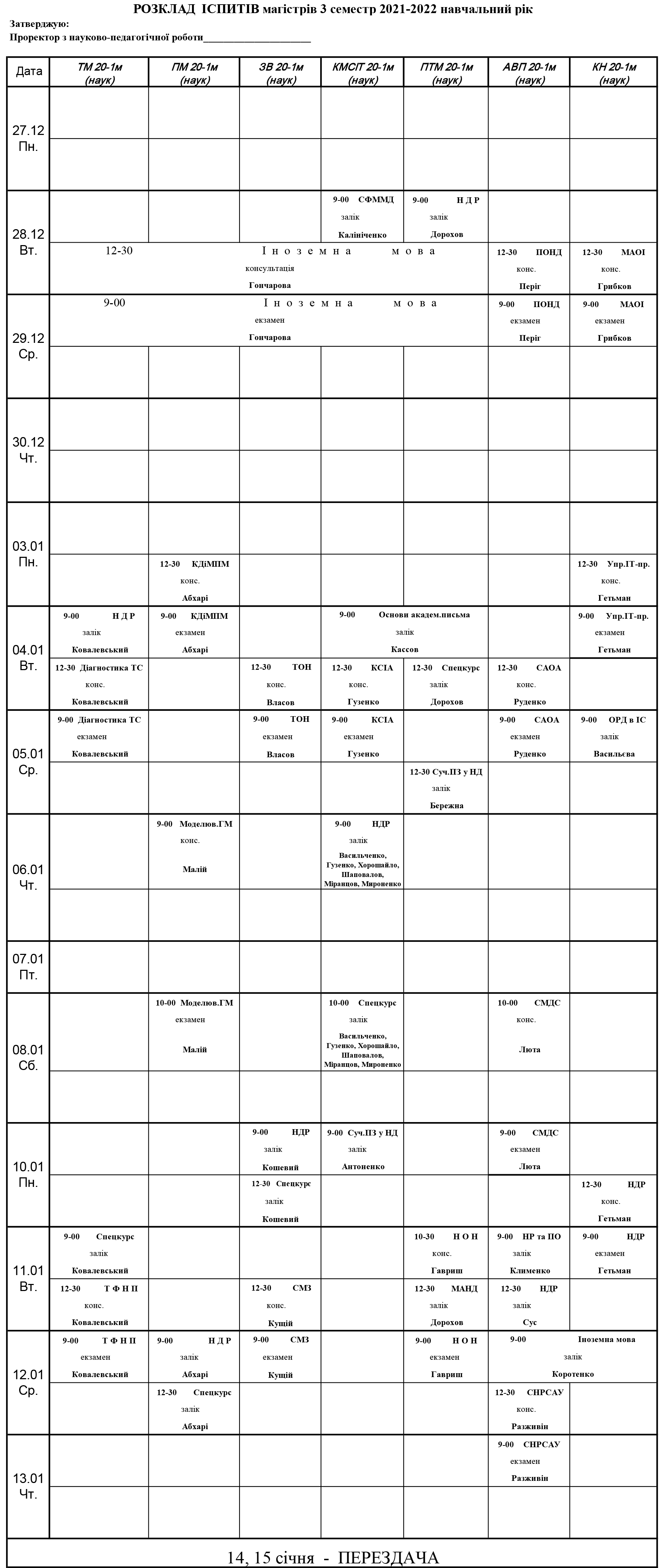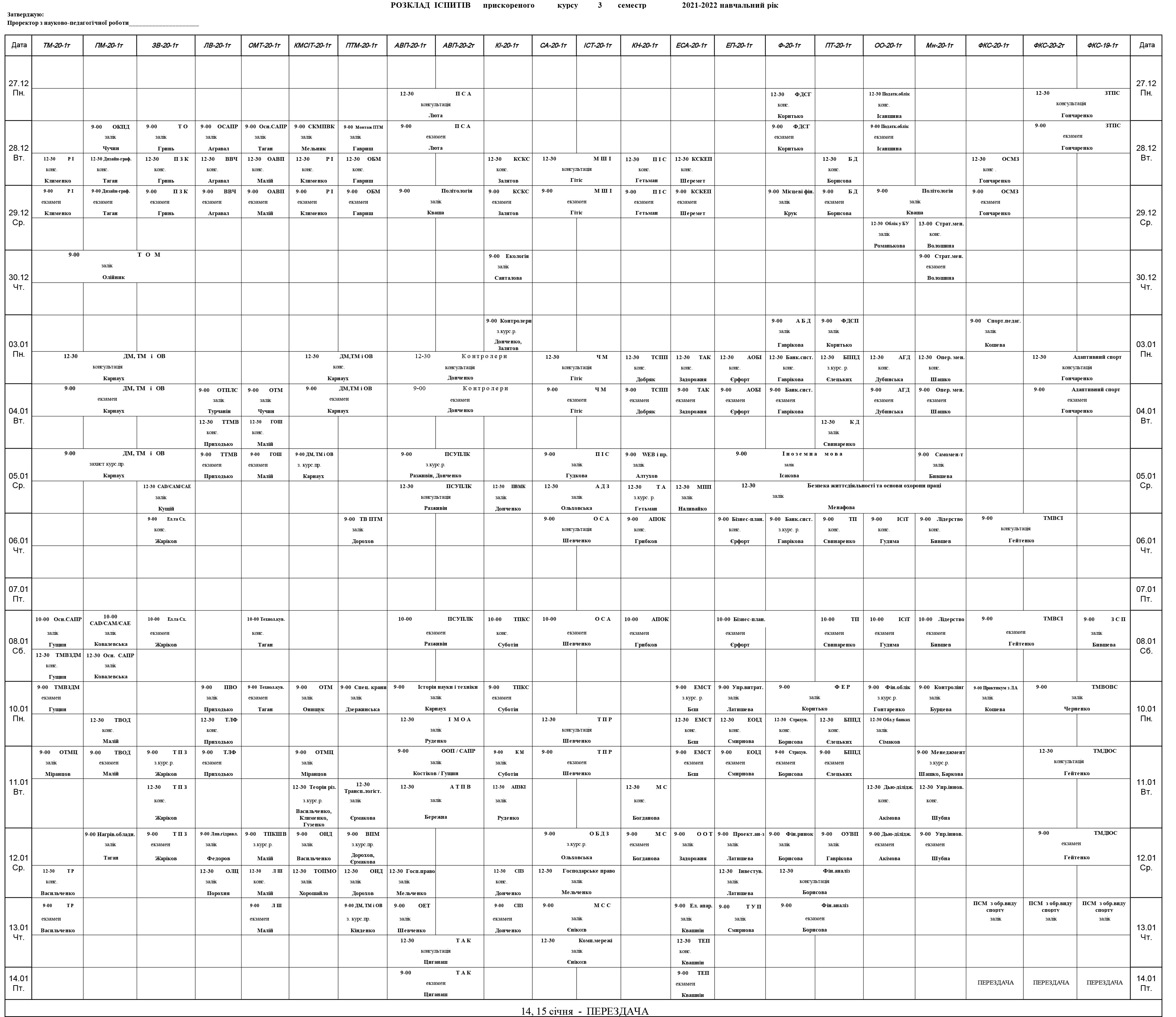 Розклад сессії для студентів денної форми навчання (дистанційно)