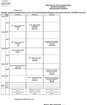 Розклад осінньої заліково-екзаменаційної сесії 2025-2026 навч. року за заочно-дистанційною формою