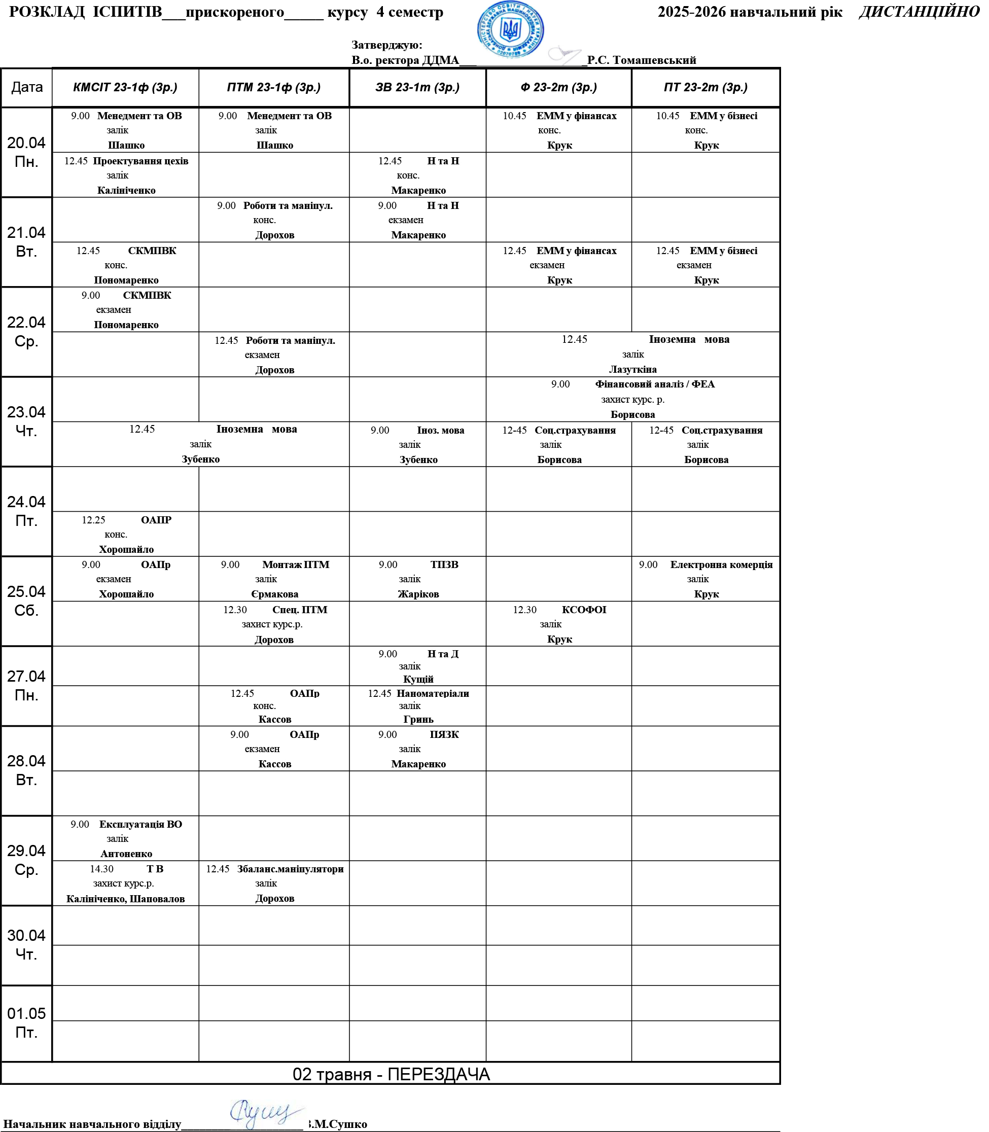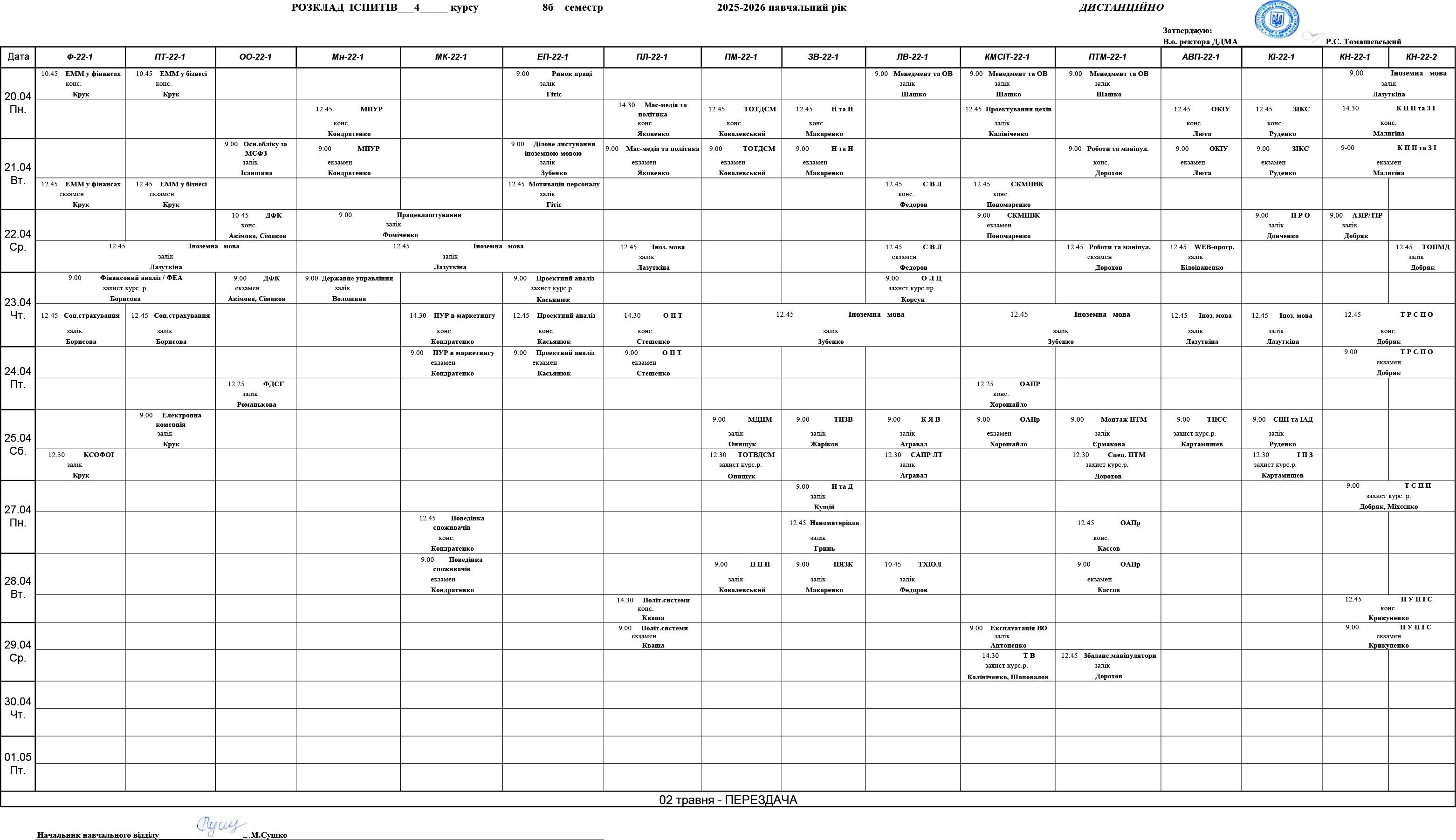 Реєстр успішності студентів ДДМА