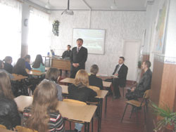 Вот уже в течение многих лет наша Академия активно сотрудничает с обще-образовательными школами города Енакиево – важнейшего центра индустрии Донбасса. За все эти годы десятки выпускников енакиевских школ поступили в ДГМА, успешно закончили Академию, стали востребованными на рынке труда специалистами, мастерами своего дела. И ни один их них не пожалел, что связал свою судьбу именно с нашим учебным заведением. Курирует профориентационную работу среди школьников Енакиево кафедра «Металлорежущие станки и инструменты» (МСИ). За многие годы работы ею были установлены тесные контакты как с органами управления городской сферой образования, так и с городскими школами. Интерес к условиям обучения в ДГМА, перспективам трудоустройства наших выпускников вызвал у школьников желание получить из первых уст более полную информацию об Академии. Поэтому, вполне естественно, что новой формой работы кафедры МСИ со старшеклассниками Енакиево стали Дни абитуриента, проводимые непосредственно в школах города. Первые из таких мероприятий прошли в апреле 2010 г. в УВК № 9, УВК № 5 и ОШ № 34 г. Енакиево. В непринужденной обстановке школьники УВК № 9 и № 5 получили возможность задать представителям кафедры МСИ и приемной комиссии самые различные интересующие их вопросы и получить на них максимально полные и квалифицированные ответы. Особый интерес старшеклассников вызвали мультимедийные материалы, дающие наглядное представление об уровне учебного процесса и научных исследований ДГМА. Посетили наши представители и общеобразовательную школу № 34 г. Енакиево – родную школу Президента Украины В. Ф. Януковича. Директор ОШ № 34 Е. И. Кондратьева показала музей именитого выпускника, в котором можно увидеть старые фотографии и другие свидетельства школьных лет будущего главы государства. И вновь в ходе встречи с одиннадцатиклассниками представители ДГМА почувствовали интерес школьников к высшему техническому образованию, ведь многие из них планируют в дальнейшем связать свою жизнь с производством.